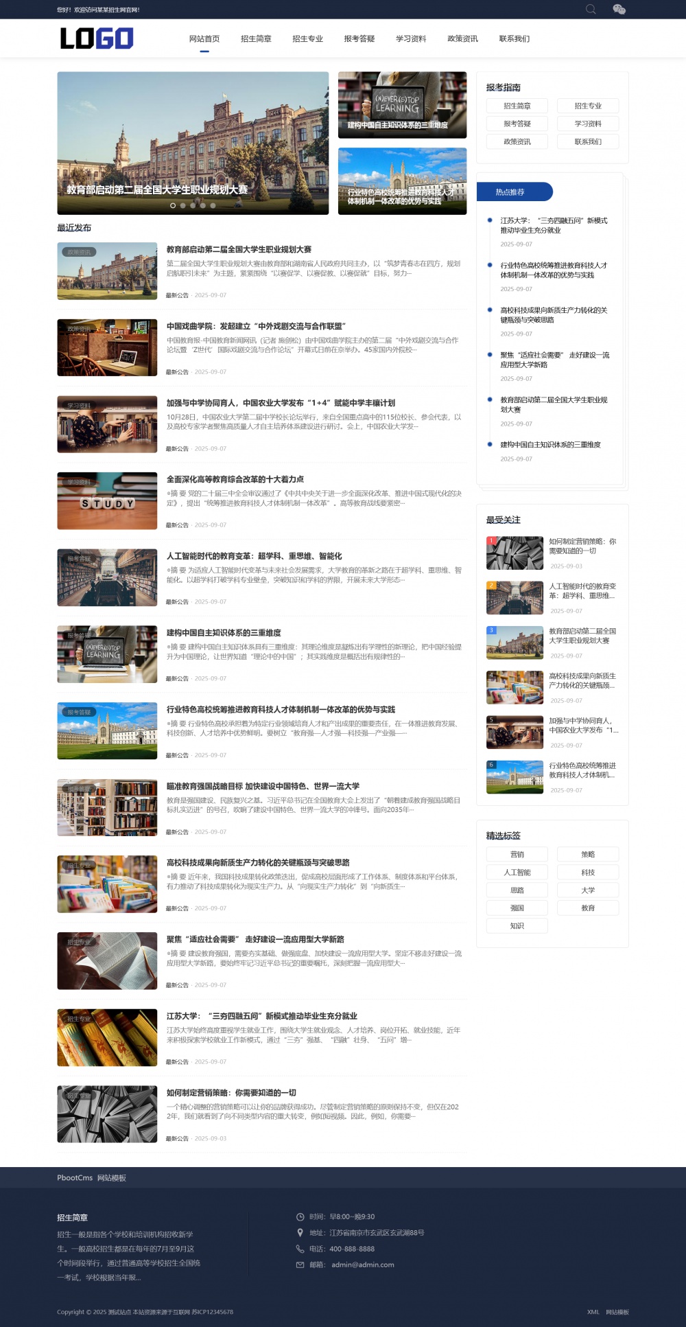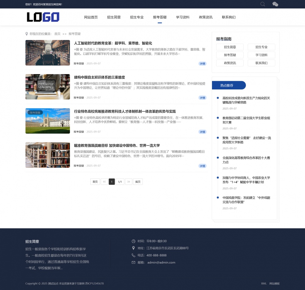 1. 适用场景:主打招生考试、新闻资讯类网站,其他行业可通过替换图文适配;