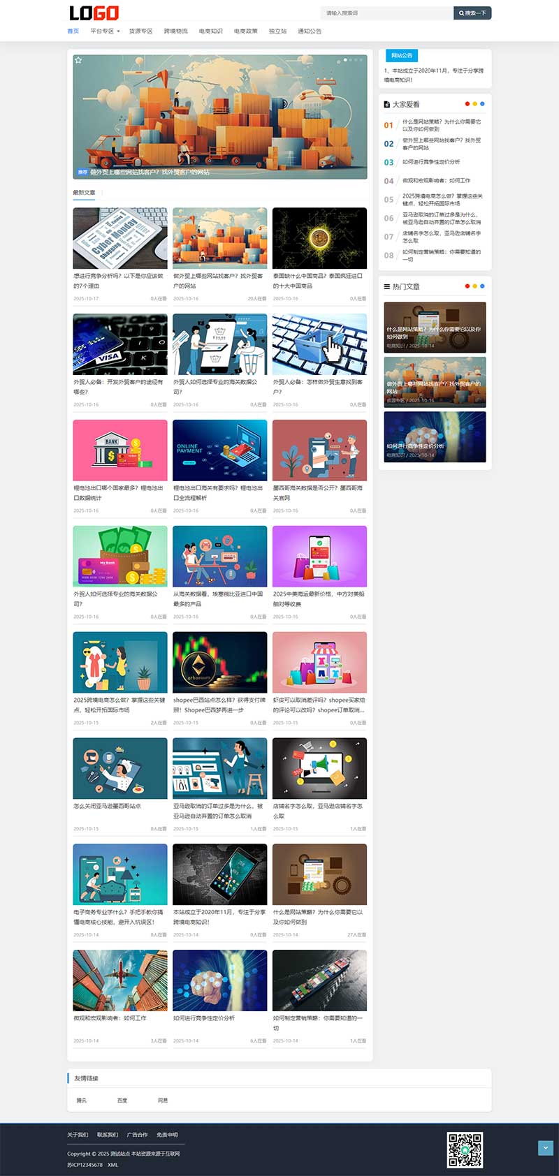 PbootCMS开源内核开发的网站模板,该模板适用于博客新闻网站、跨境电商博客网站等企业,其他行业也可以做,只需要把文字图片换成其他行业即可;