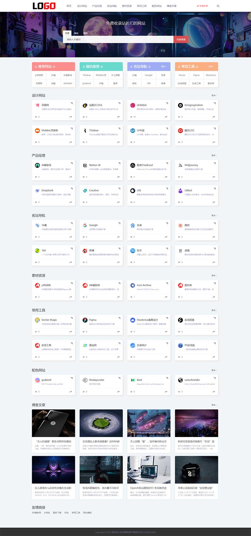 核心功能是网址收纳、分类导航与快速访问,适合搭建行业网址导航、垂直领域资源库、企业内部链接平台等场景。