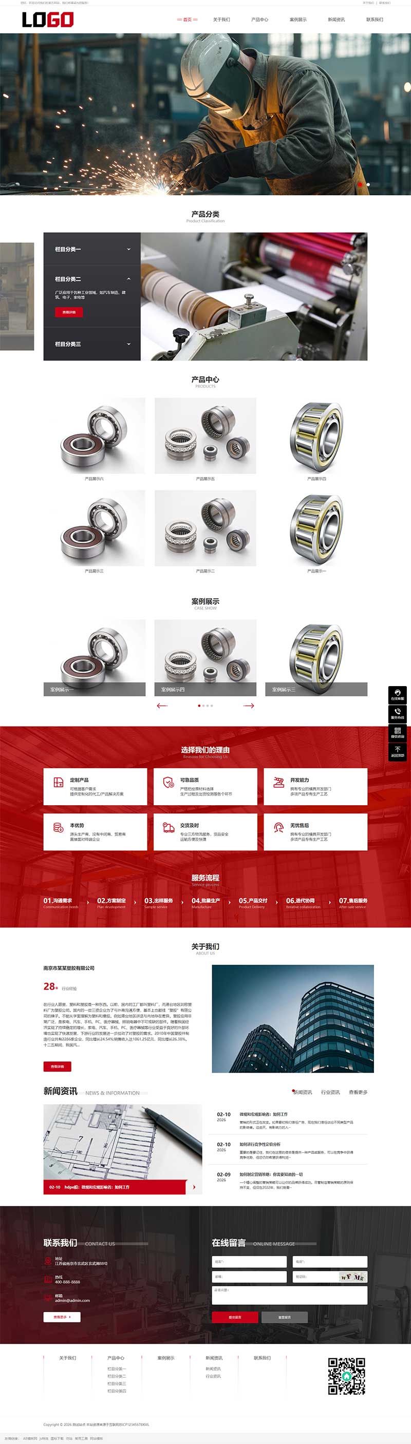 模板设计以“简约大气、重点鲜明、导向转化”为核心原则,视觉风格贴合工业品类沉稳专业的气质,主色调采用高级灰与科技蓝,搭配低调哑光色系,配合清晰的视觉层次与合理的留白设计,剔除多余装饰元素,让访客在3秒内抓取核心信息——无论是注塑产品的精密细节、加工工艺的专业优势,还是企业的服务能力,都能直观呈现,贴合B2B买家“高效获取信息、快速建立信任”的浏览习惯,有效降低页面跳出率。