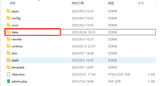 打开config文件夹,用html编辑器,编辑database.php这个文件,把里面的data也改成和刚刚data文件夹一样的名字。