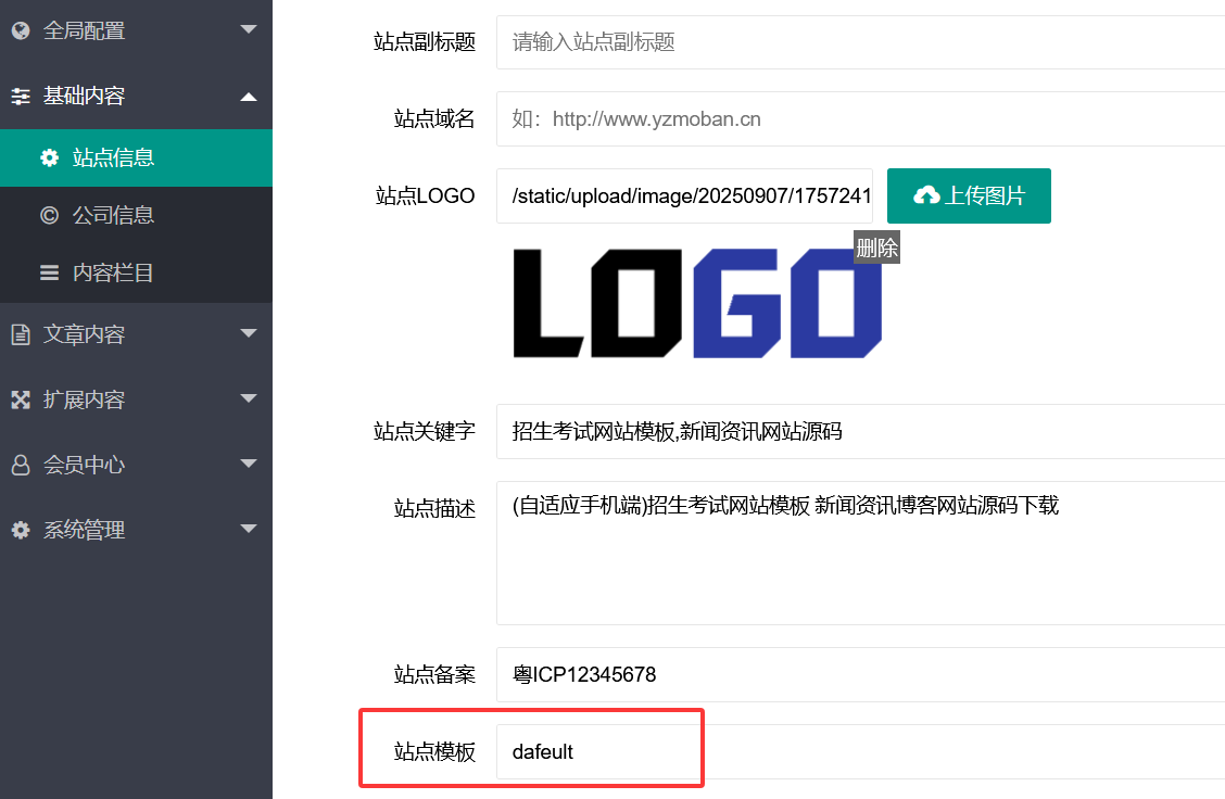 修改后,到网站后台-站点信息里,选择新的站点模板,重新点提交保存,这个必须要做
