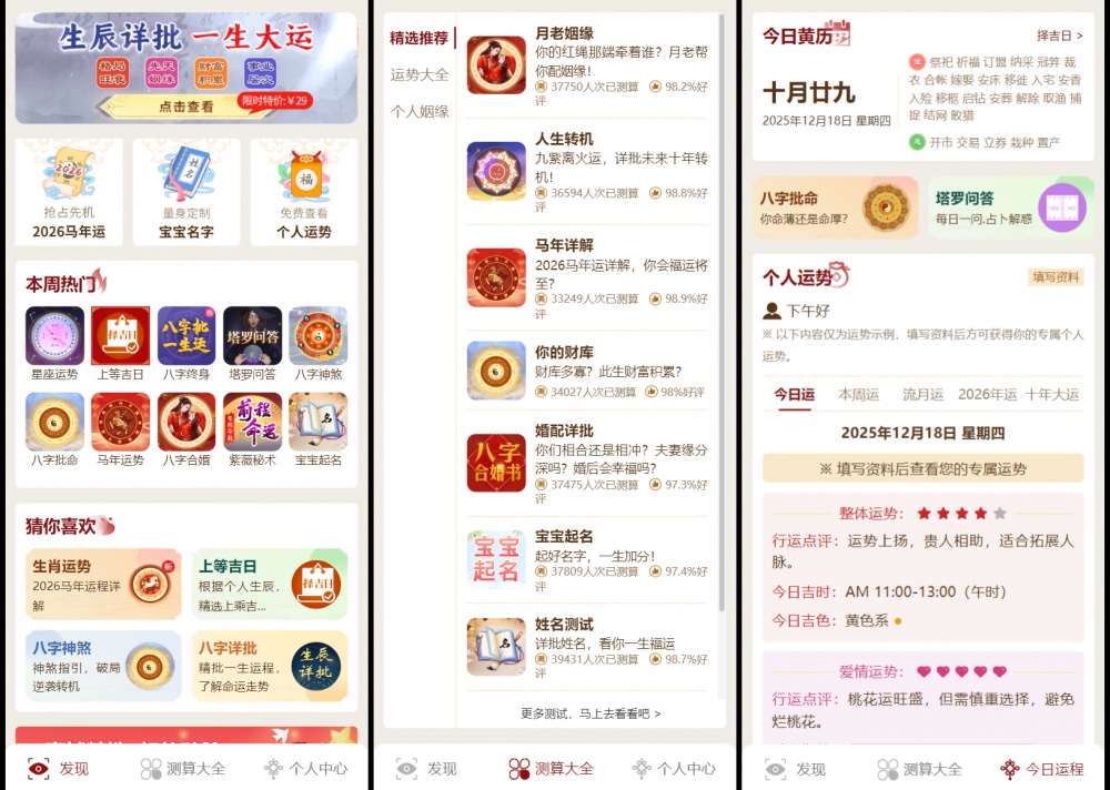 更新马年运势模板,新增八字神煞、八字终身运查询功能