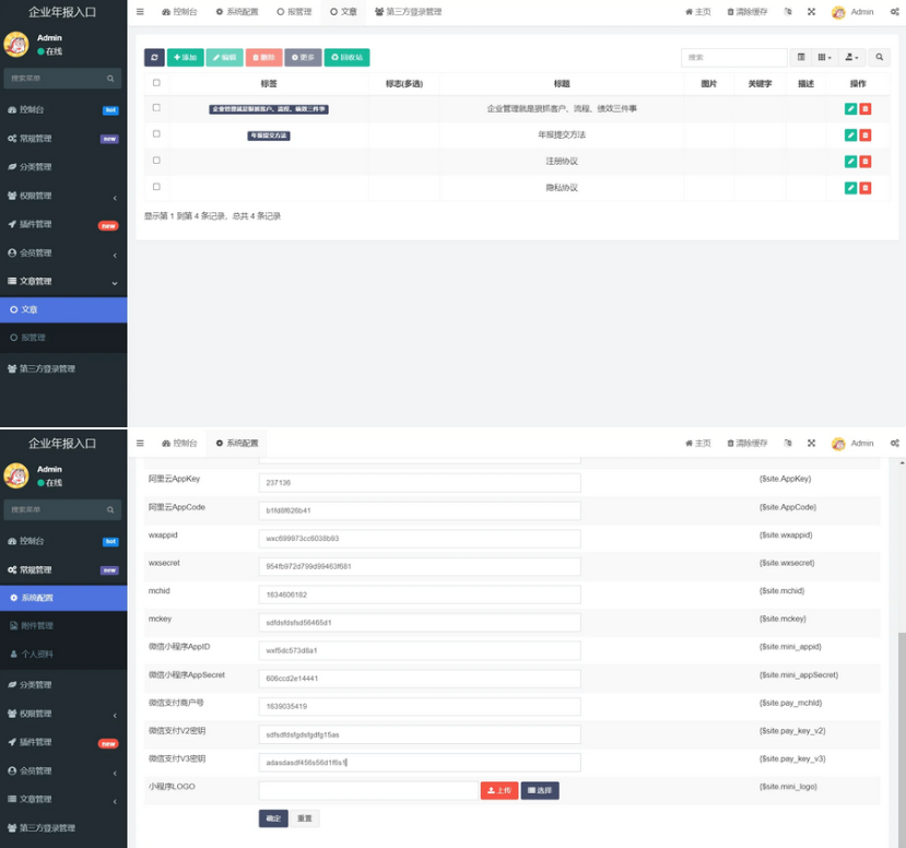 4、可自主修改短信、阿里云、微信等相关配置信息。